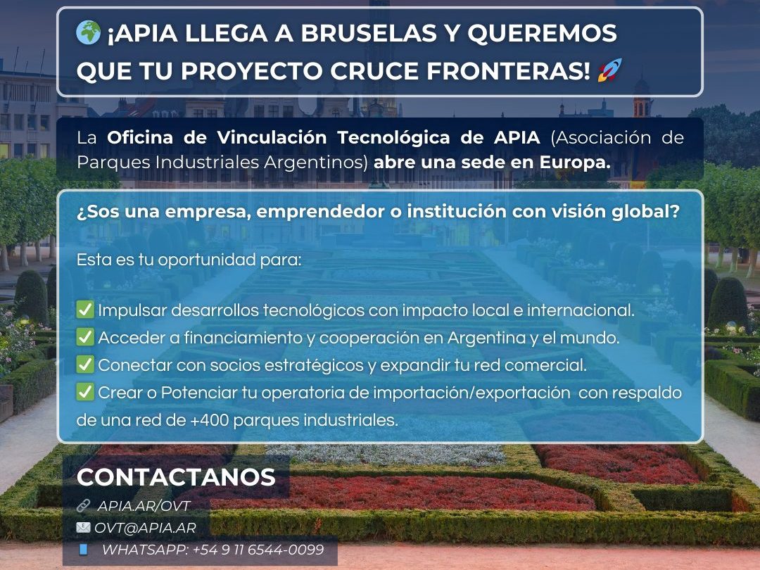 La Oficina de Vinculación Tecnológica de APIA (Asociación de Parques Industriales de Argentina) no solo abre una sede en Europa, ¡sino que abre puertas ilimitadas para tu crecimiento!